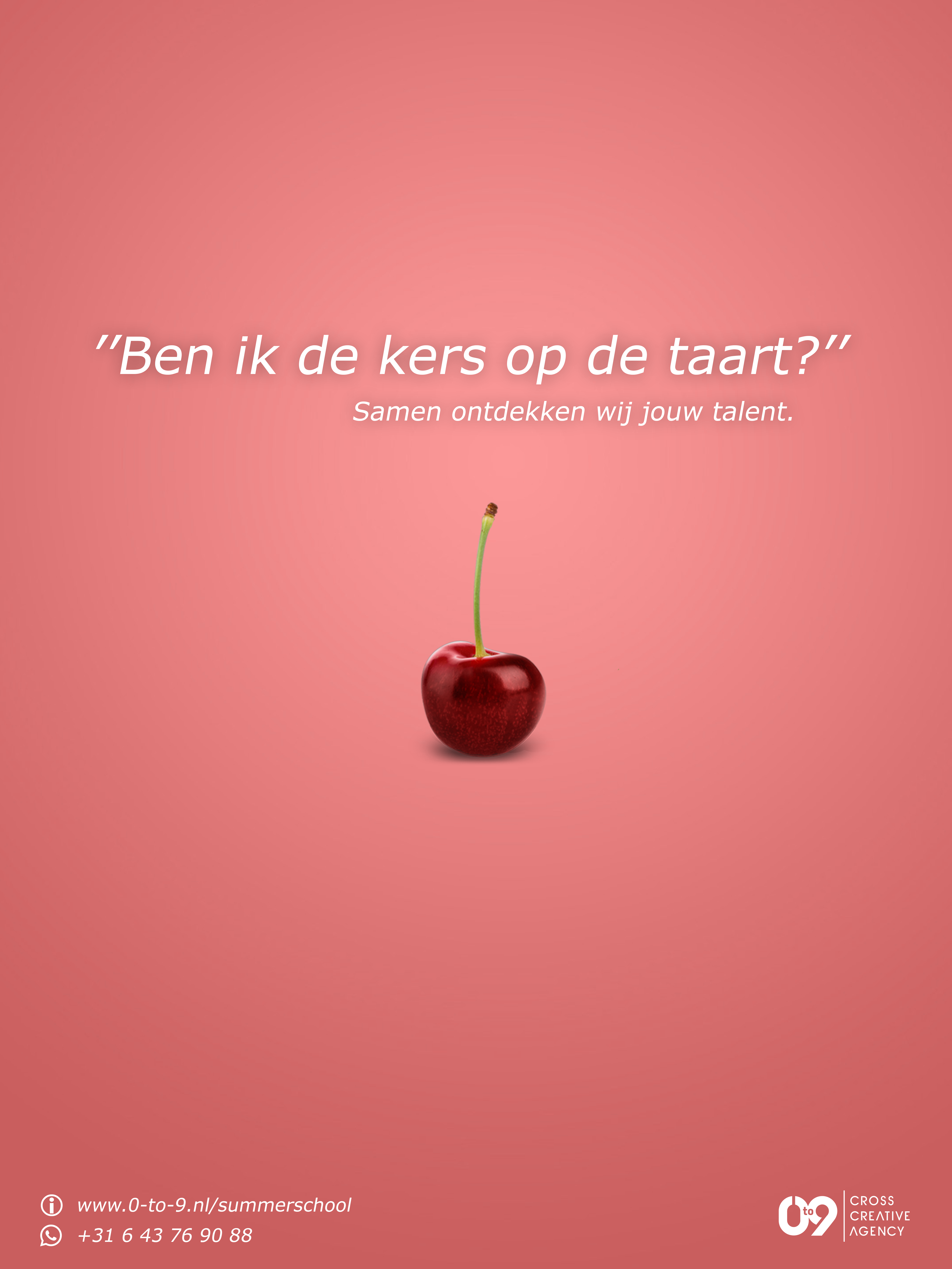 The client for this case was 0to9, a full-service marketing communication agency. They approached me to design a poster to promote their Summer School internship. The goal was to attract students and give them the opportunity to experience the agency over the course of a summer.
