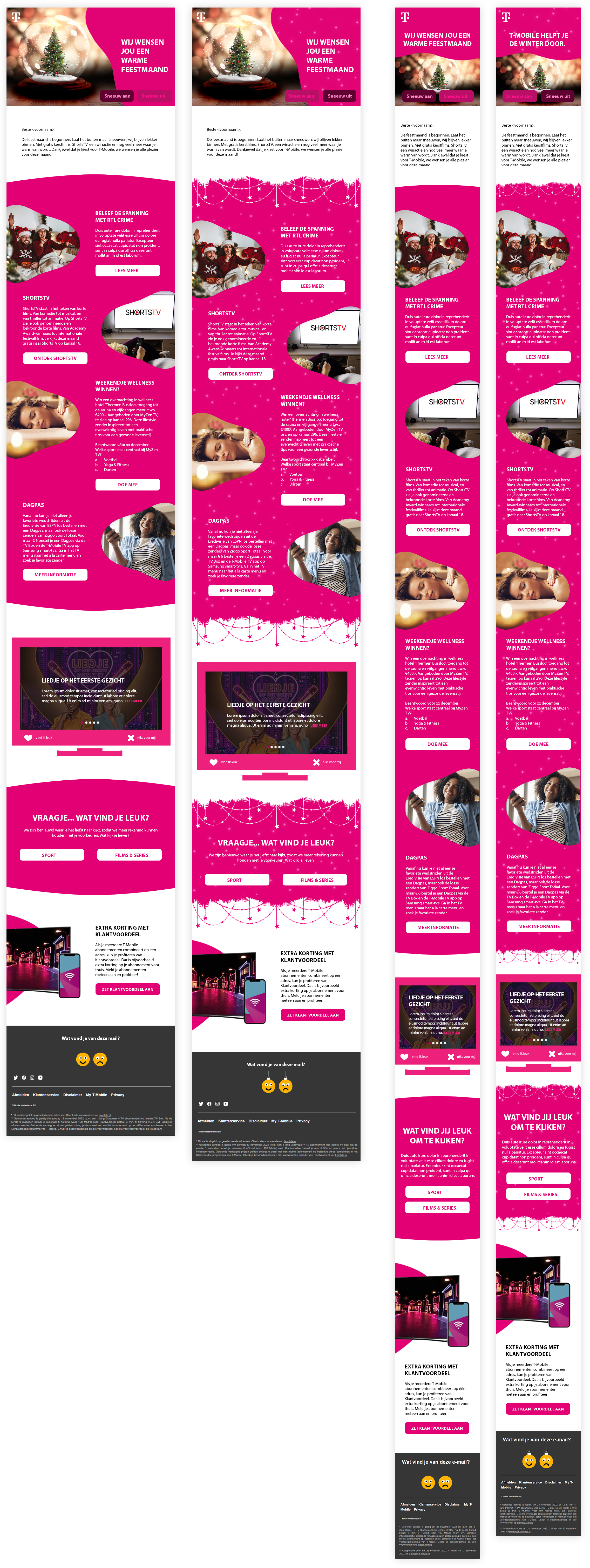 Naast de visuele uitwerking onderzocht ik ook technieken om beweging en interactie toe te voegen aan de nieuwsbrief. Zo kwam ik op het idee van een schuifknop die geanimeerde blaadjes of sneeuw kon activeren, iets wat nog niet eerder in T-Mobile’s mails gebruikt was en waarmee ik de lezer écht wilde verrassen.